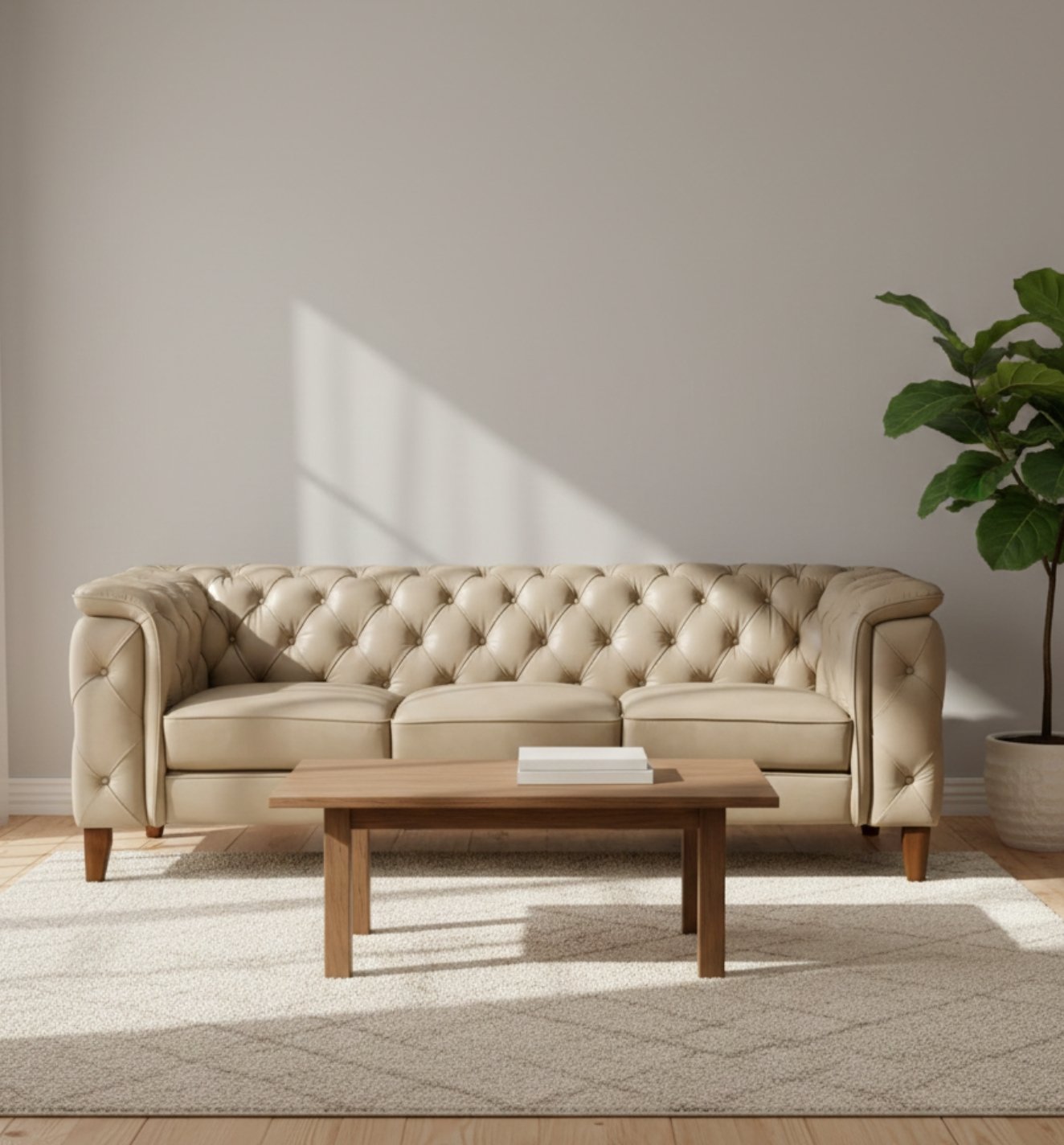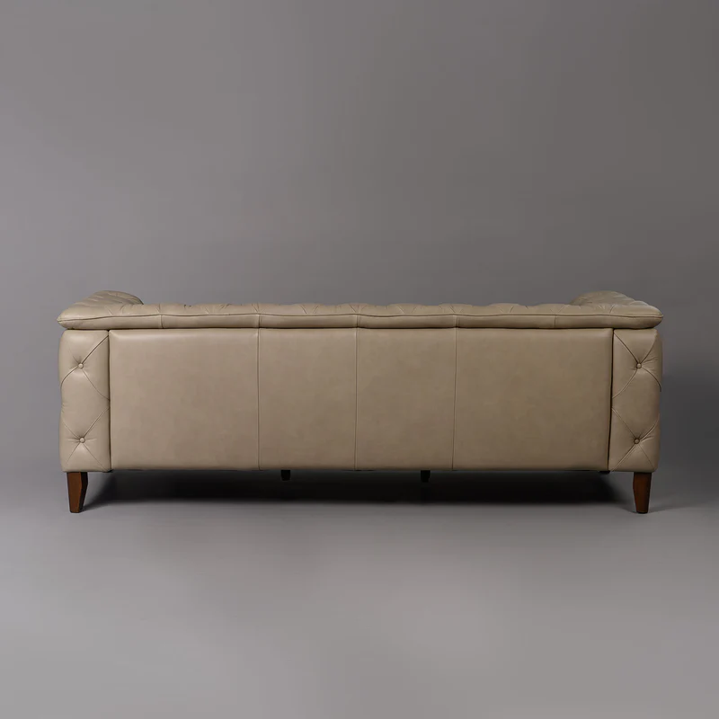 A timeless haven of comfort and craftsmanship, the Exeter Chesterfield 3-Seater Sofa is designed to welcome, envelop, and elevate. Its classic tufted silhouette, upholstered in premium Nobel two-tone aniline leather, carries a depth and warmth that shifts gently with light and touch. Generous high-resilience foam cushioning enhances comfort and support, making every moment feel indulgent. Resting on walnut-finished rubberwood legs, the sofa balances elegance with grounded presence – a piece that feels both iconic and inviting.