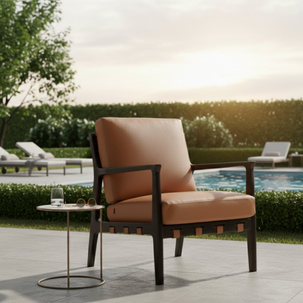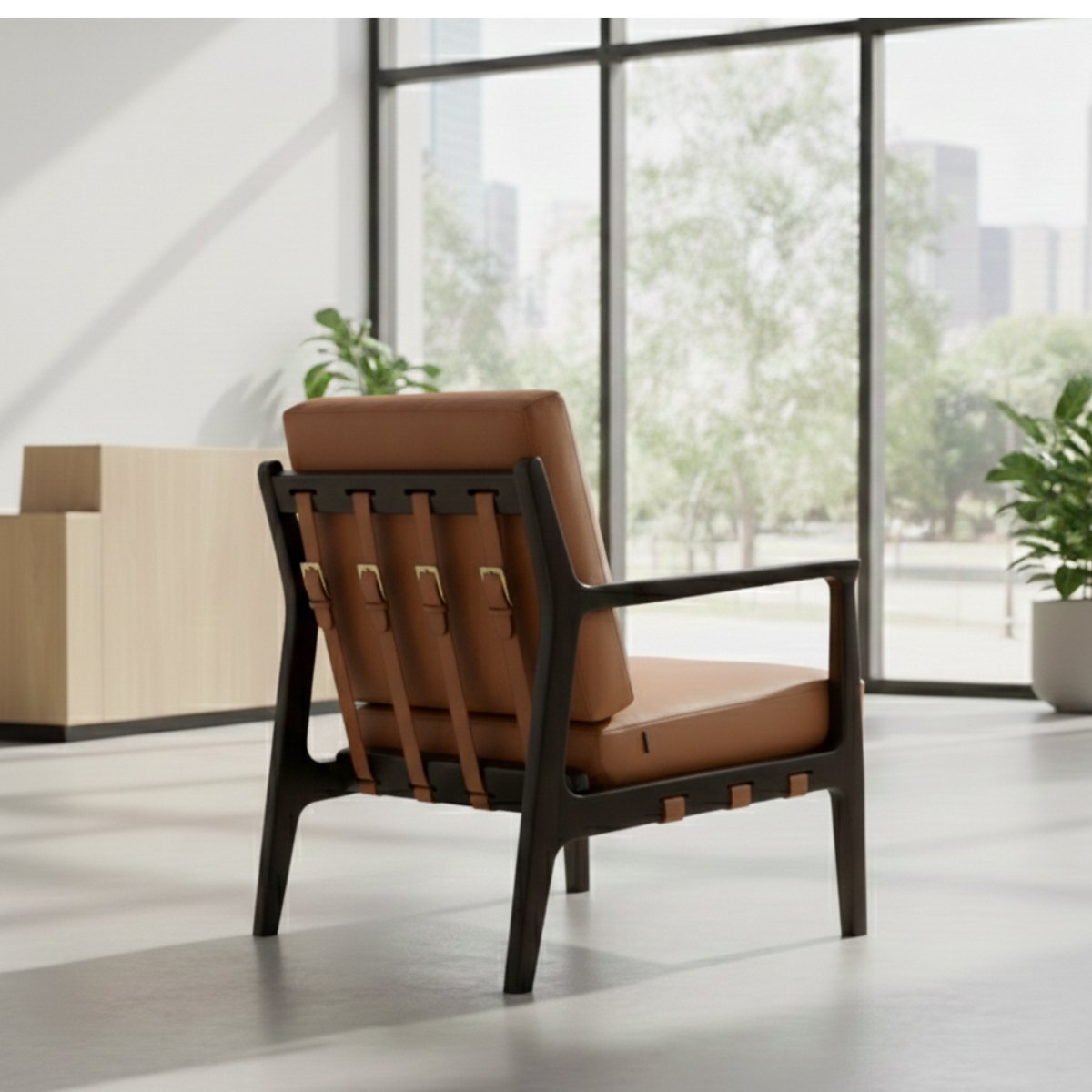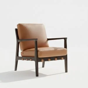 A modern classic with artisanal detailing, the Haven Buckleback Lounge Chair blends comfort and character with effortless style. Upholstered in waxy leather and framed in solid teak wood with a warm walnut polish, it features a signature buckle-back design with antique brass-finished accents. Plush foam and polyfill cushioning ensure lasting comfort, making it a timeless addition to living rooms, studies, or private nooks.