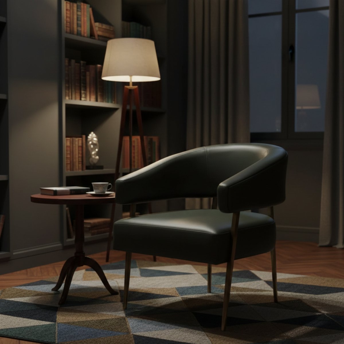 The Safi Lounge Chair redefines comfort through simplicity and craftsmanship. Upholstered in rich waxy leather, it features a smooth barrel-back silhouette enhanced by fine top stitching and plain seams. The hammered forged-iron legs in antique brass finish lend a sculptural elegance, making it a timeless addition to modern or classic interiors alike.
